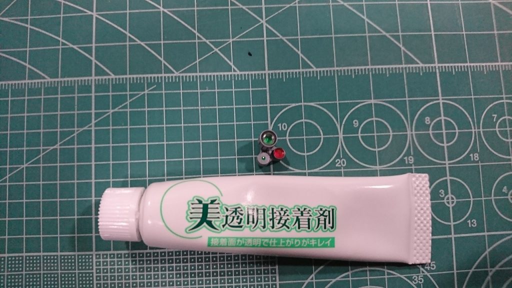 透明レジンのレンズが付属していたので,整形後,軽くペーパーでやすってから