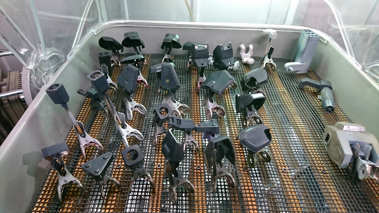 【製作記】ターボカスタム 1/20 vol.14 funapon 2018-11-10 2018-11-10 【製作記】ターボカスタム 1/20 vol.14 へのコメントはまだありません 出張やら何やらで間が空きました. タボカスは少し後退しては進んでといった感じです. 一部パーツは白でグラデーションを掛けてきたのですが,下地の段階で 気になるパーツもあったので,サフからやり直しました. ヒケが少し見えましたので,ヤスリ直しです. こちらは傷が少し見えたのでやり直しました. 800番->1200番で修正しています. サフを噴いてキレイになったか確認です. これだけ直しました.とはいえ,サフでまた気になったパーツも出てきたので もう少し手を入れる予定です.