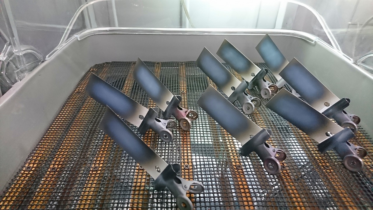 色々な緑色を噴きつけてみました.色合いは写真と実物でかなり違います.
