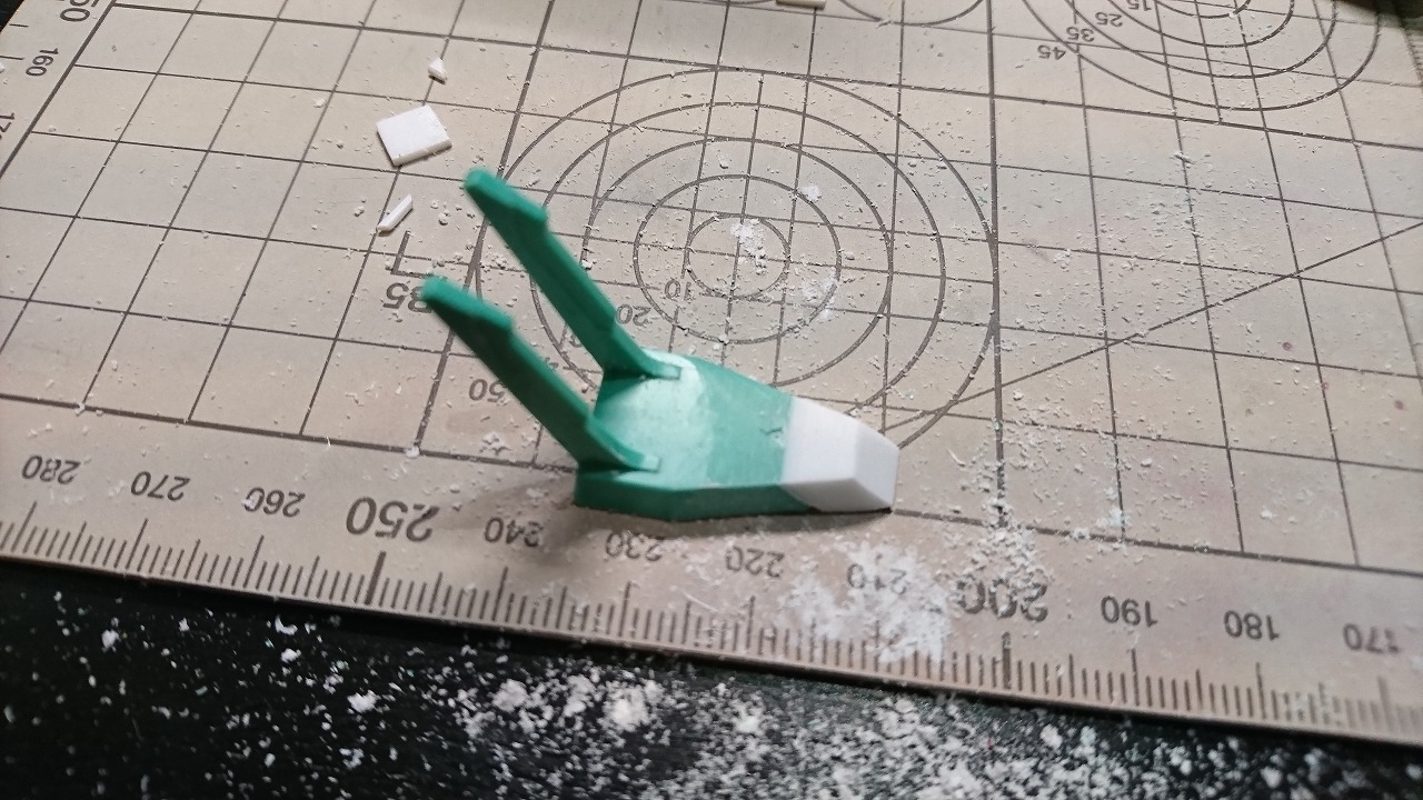 トサカは少し短く感じたので1mmプラ版を貼っています.