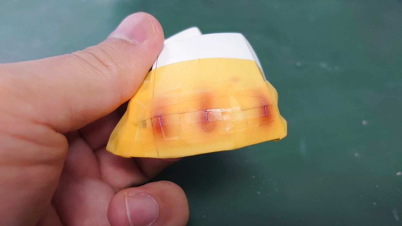 エナメルも雑に拭き取ると塗面がハゲたり傷んだりするので,マスキングして