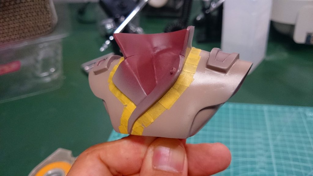 肩の飾りも同じようにマスキングを行って塗り分けています.