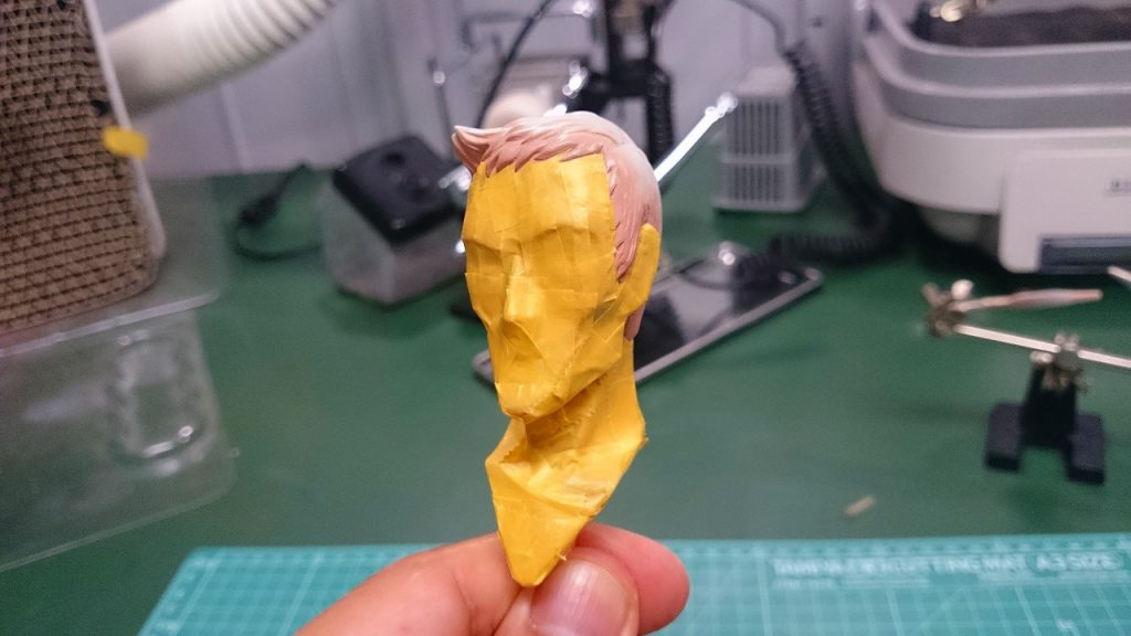 まずはカン・ユー大尉の目を白塗りするためのマスキングです.