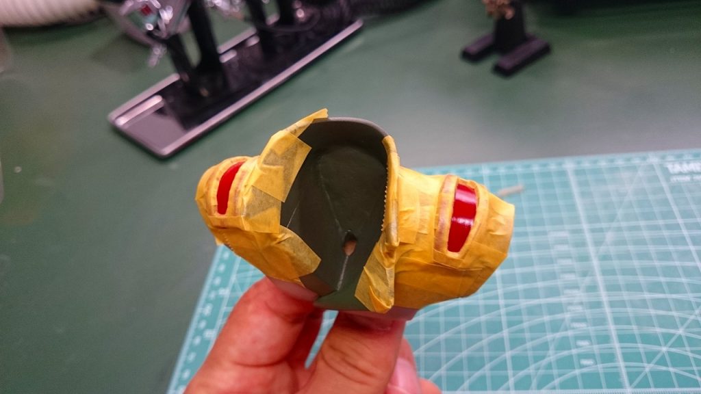 まずは肩の飾りの中身を塗るためにマスキングです.