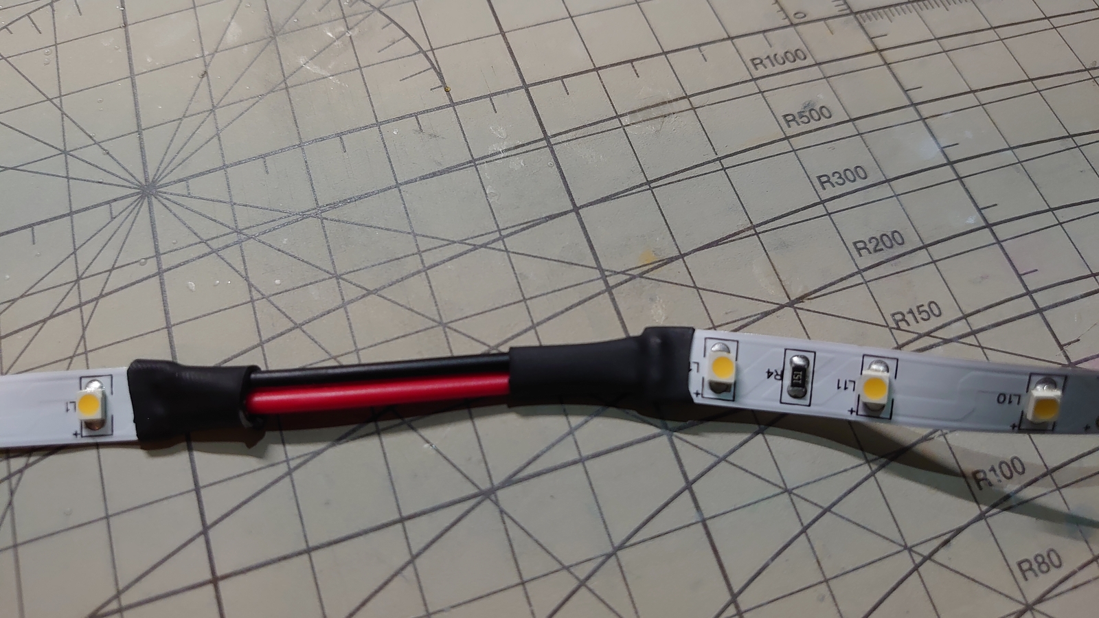 LEDテープは5cm単位で切断可能,また1mの場合は先端と末端にコネクタがついており