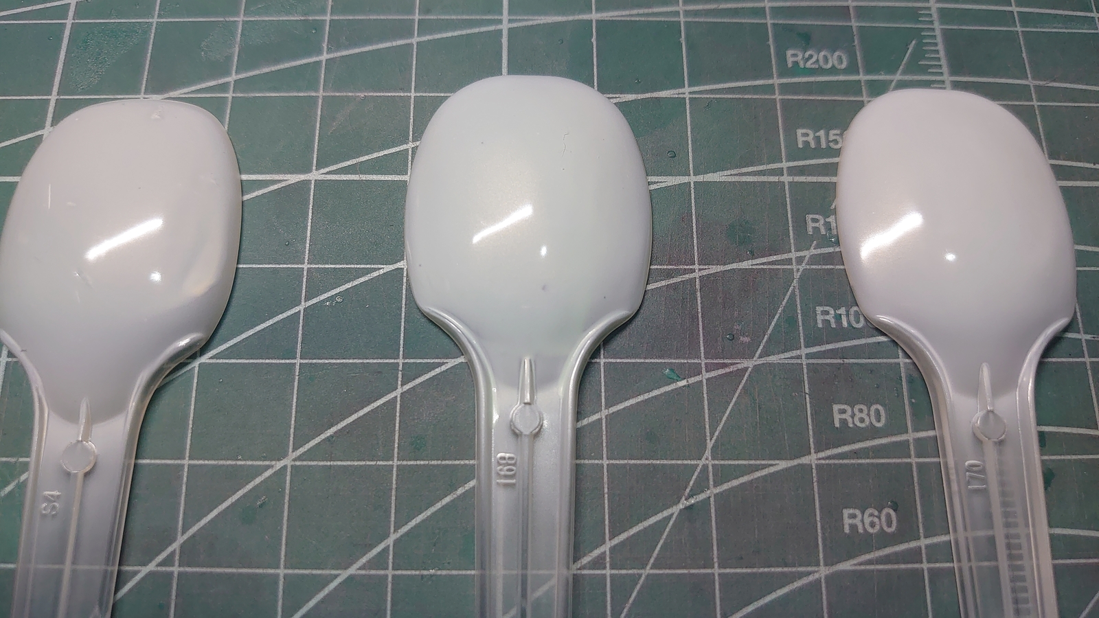 これにパールを吹くとどうなるのか,更にクリアーホワイトを吹いてみると?・・・