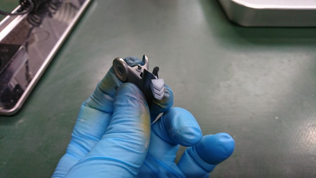 赤色だとわかりづらいんですよね.削って再度サフ噴きです.