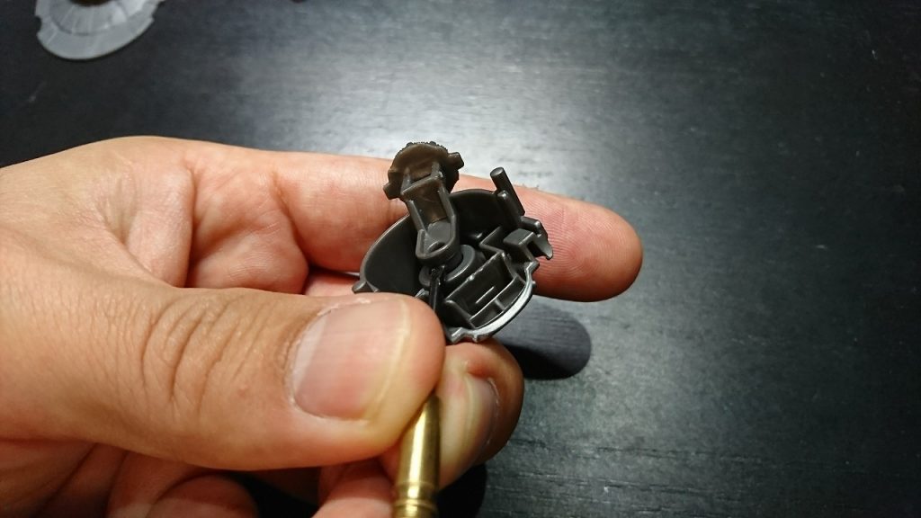 モノアイは以下写真のように可動部分の隙間にマイナスドライバを突っ込んでコジれば