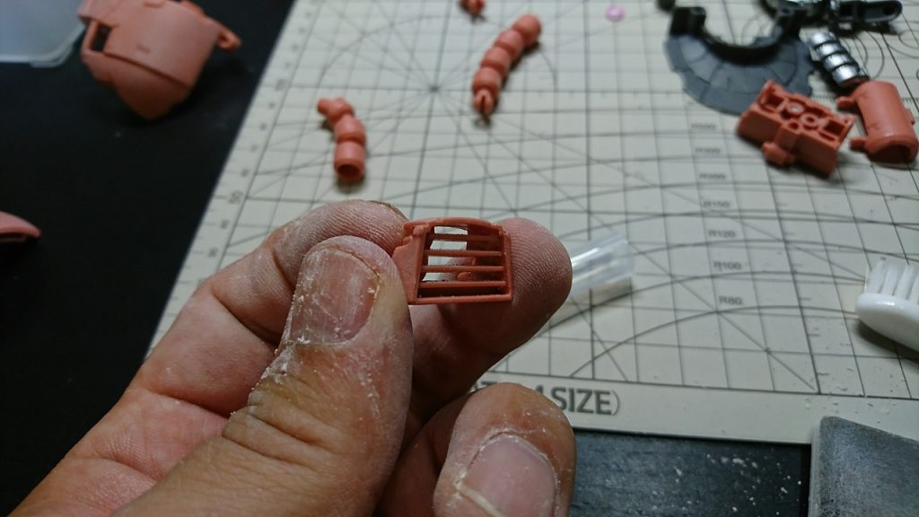 そのままでも飾れないこともないザクヘッドですが,やはりヒケやらランナー痕が気になります.
